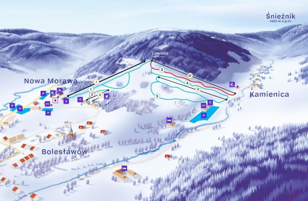 Stacja Narciarska Kamienica to miejsce ukochane przez miłośników białego szaleństwa. Jeśli jeszcze nie wiesz, jak wyglądają ośnieżone białym puchem stoki i marzysz o tym, aby szusować na nartach nawet późnym wieczorem — ten malowniczo położony punkt wyposażony w 5 wyciągów został stworzony specjalnie dla Ciebie. Odpowiednio naśnieżone trasy dla narciarzy usytuowane są na zboczu góry Zawada (778 m n.p.m.). Doskonałą wiadomością dla aktywnych narciarzy jest fakt, że w Kamienicy można szusować nawet podczas braku opadów śniegu. Armatki śnieżne oraz regularne ratrakowanie to olbrzymia zaleta kurortu, jakim jest Stacja Narciarska Bolek. Dlaczego jeszcze warto tam pojechać? Oto ważne dla narciarzy parametry.